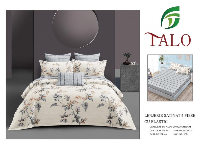 Lenjerie Bumbac Satinat 4 Piese cu Elastic LBS1033