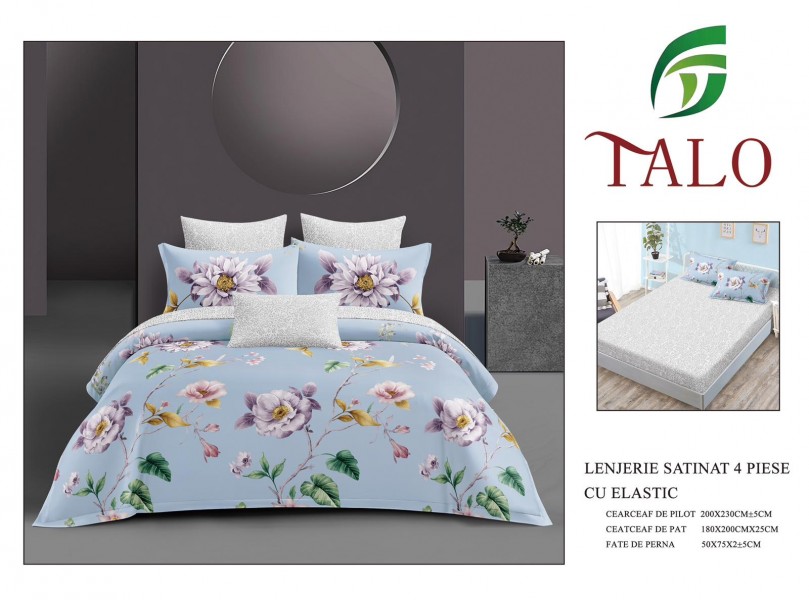 Lenjerie Bumbac Satinat 4 Piese cu Elastic LBS1035