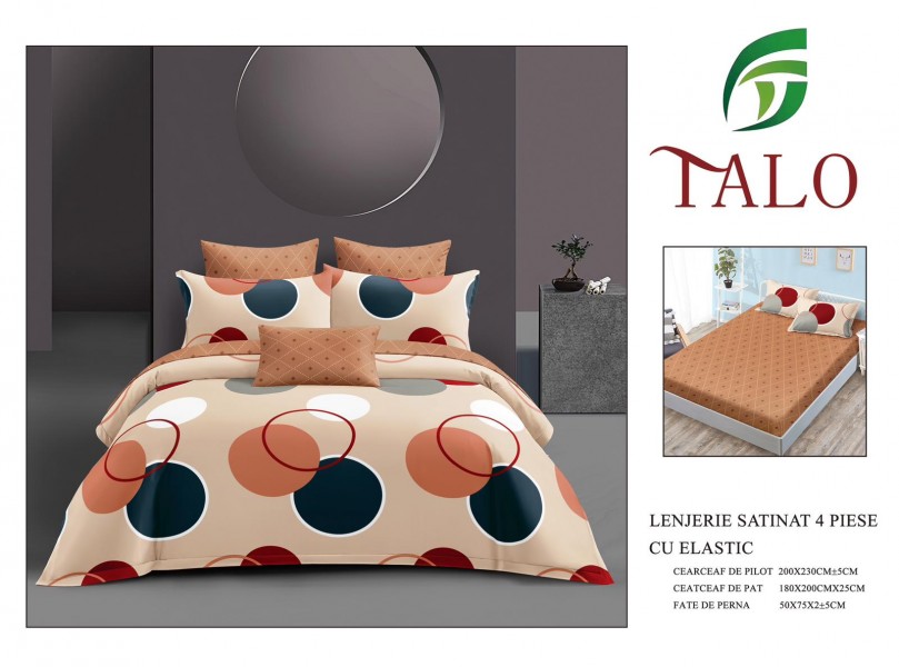 Lenjerie Bumbac Satinat 4 Piese cu Elastic LBS1036