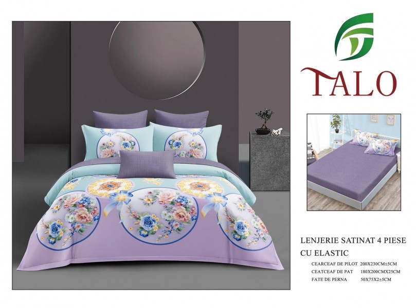 Lenjerie Bumbac Satinat 4 Piese cu Elastic LBS1038