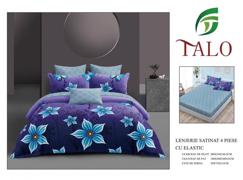 Lenjerie Bumbac Satinat 4 Piese cu Elastic LBS1039