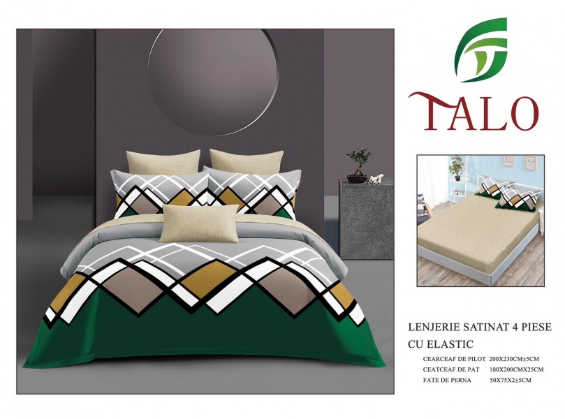 Lenjerie Bumbac Satinat 4 Piese cu Elastic LBS1040