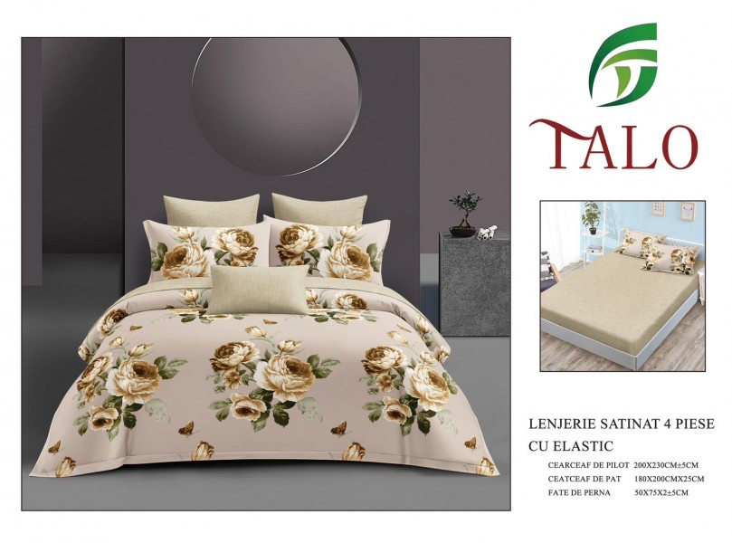 Lenjerie Bumbac Satinat 4 Piese cu Elastic LBS1041