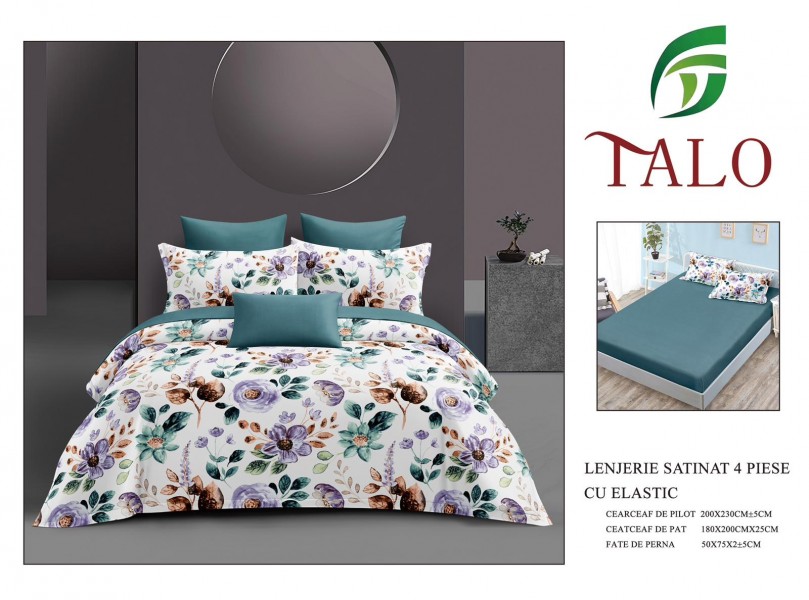 Lenjerie Bumbac Satinat 4 Piese cu Elastic LBS1048