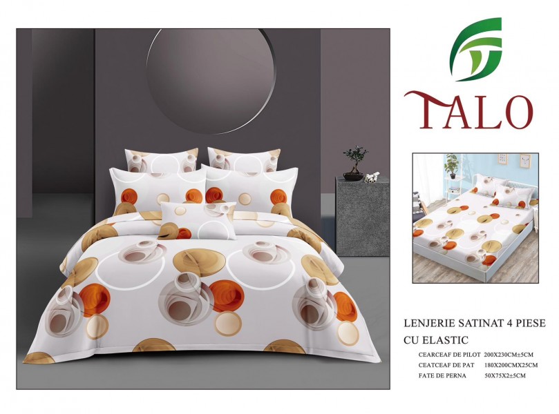 Lenjerie Bumbac Satinat 4 Piese cu Elastic LBS1052