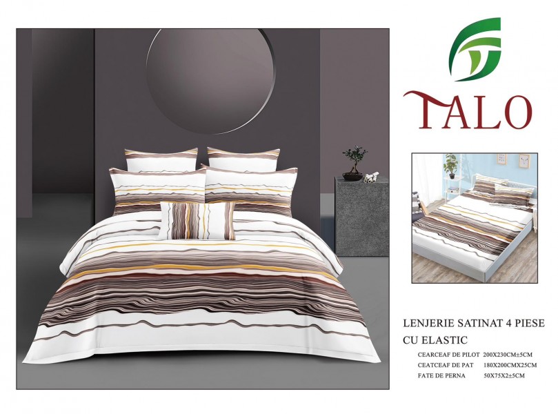 Lenjerie Bumbac Satinat 4 Piese cu Elastic LBS1054