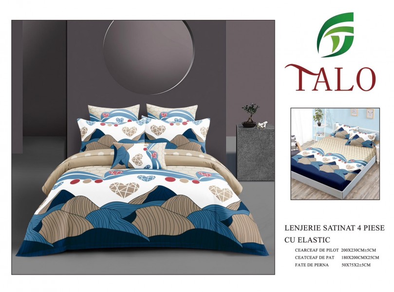 Lenjerie Bumbac Satinat 4 Piese cu Elastic LBS1055